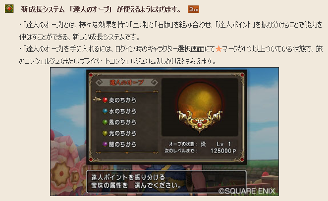 バージョン3から出てきた成長システム「達人のオーブ」。